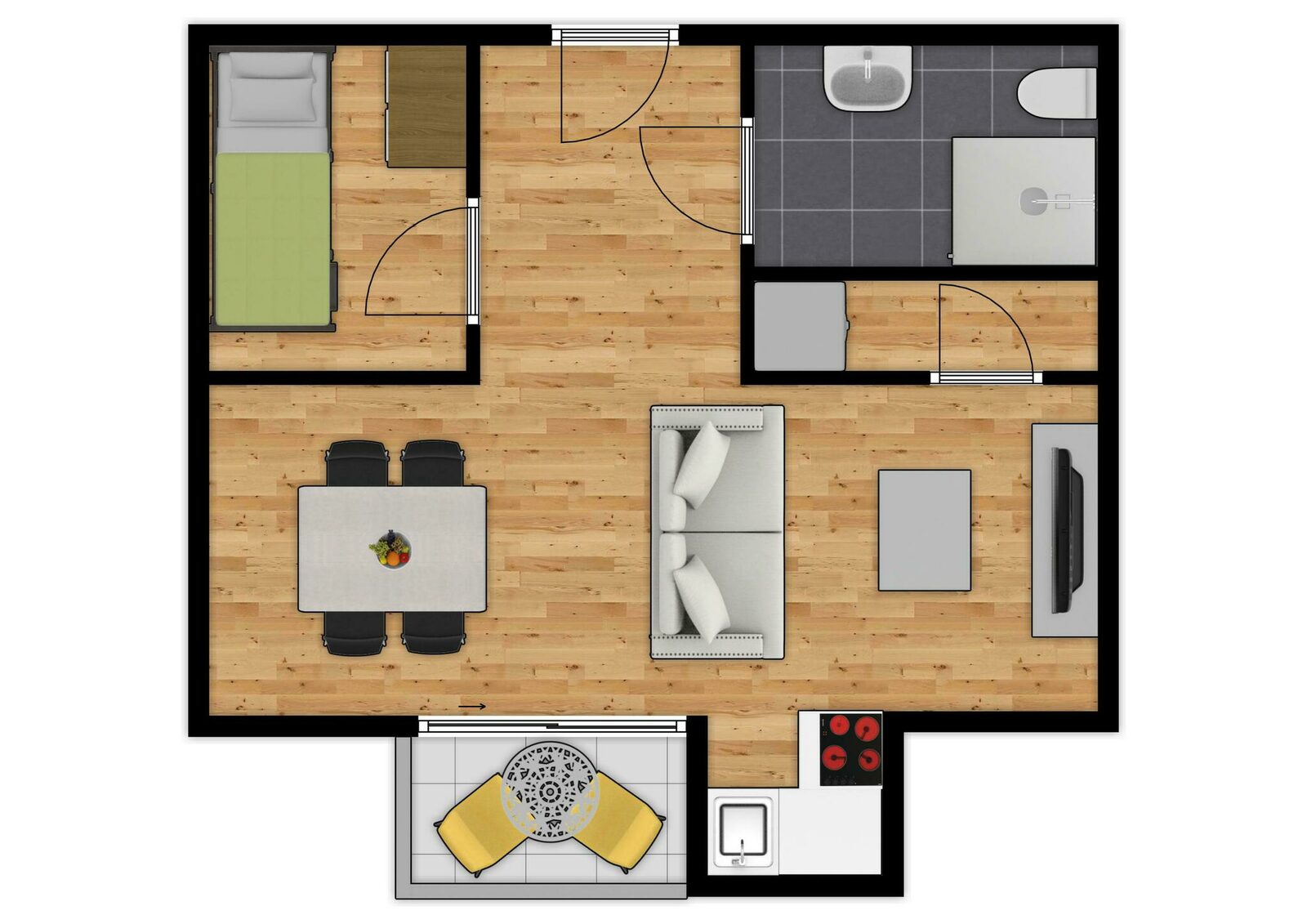- Each holiday apartment has its own equipped kitchen (from dishwasher to fridge...).